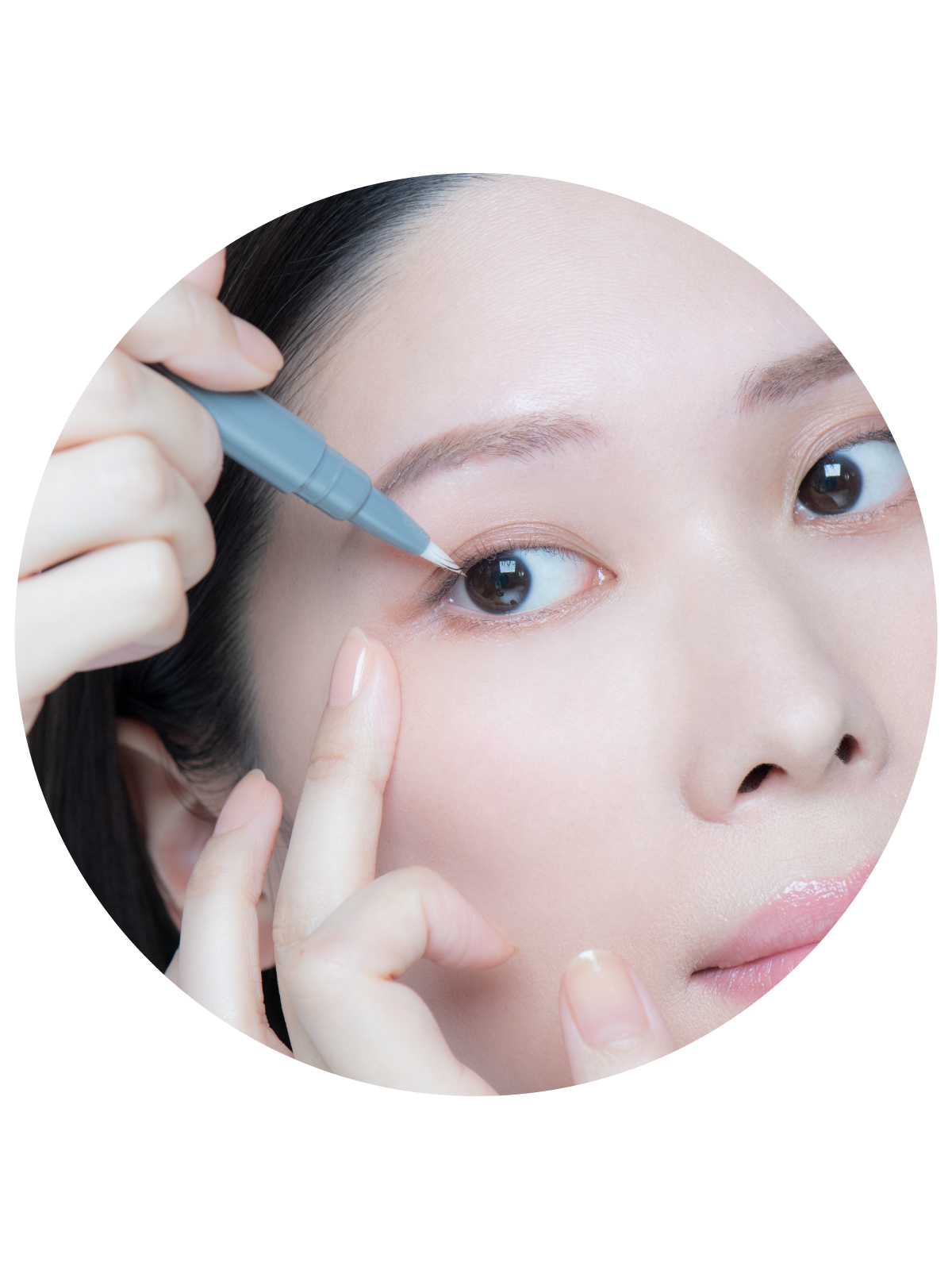 Gently apply an appropriate amount to the lash line from the inner corner of the eye to the outer corner of the eye. Apply gently to fill in the space between the hairs.